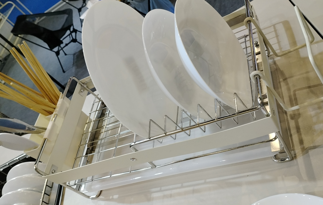 Série kuchyňských úložných prostor: Vynikající byl nerezový výsuvný stojan na sušení nádobí, navržený pro optimální funkčnost a úsporu prostoru. Série také zahrnuje multifunkční nástěnné stojany a magnetické držáky nožů, všechny vyrobené s minimalistickou estetikou ideální pro kompaktní moderní kuchyně.